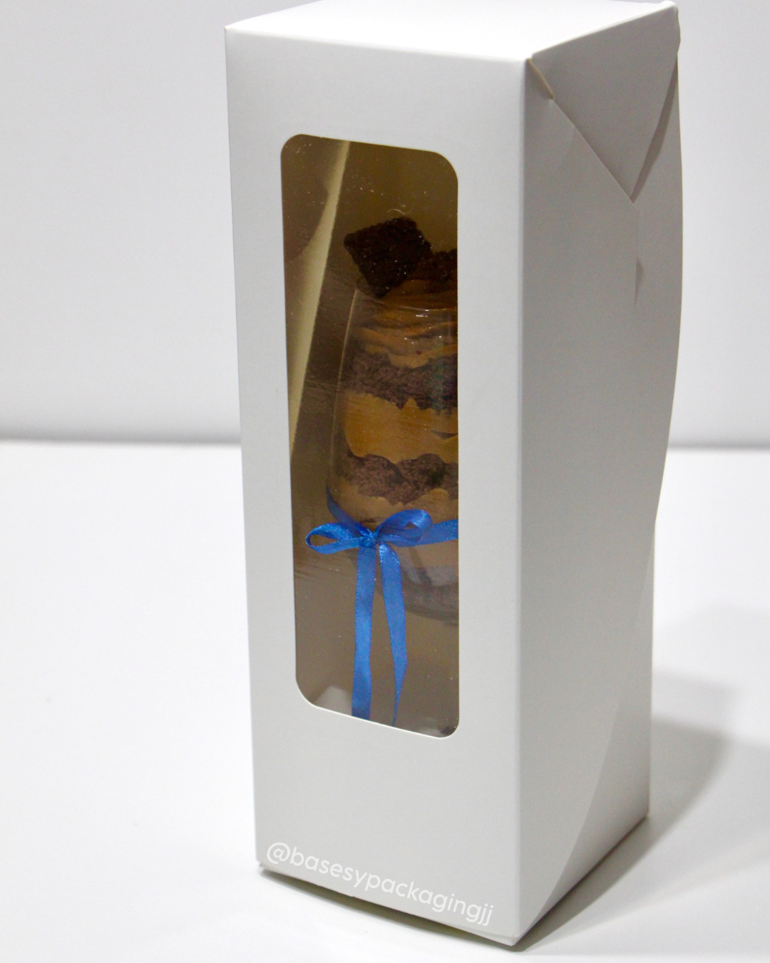 Cajas de cartulina blanca con visor para la cake copa (el producto no viene con la copa de vidrio)