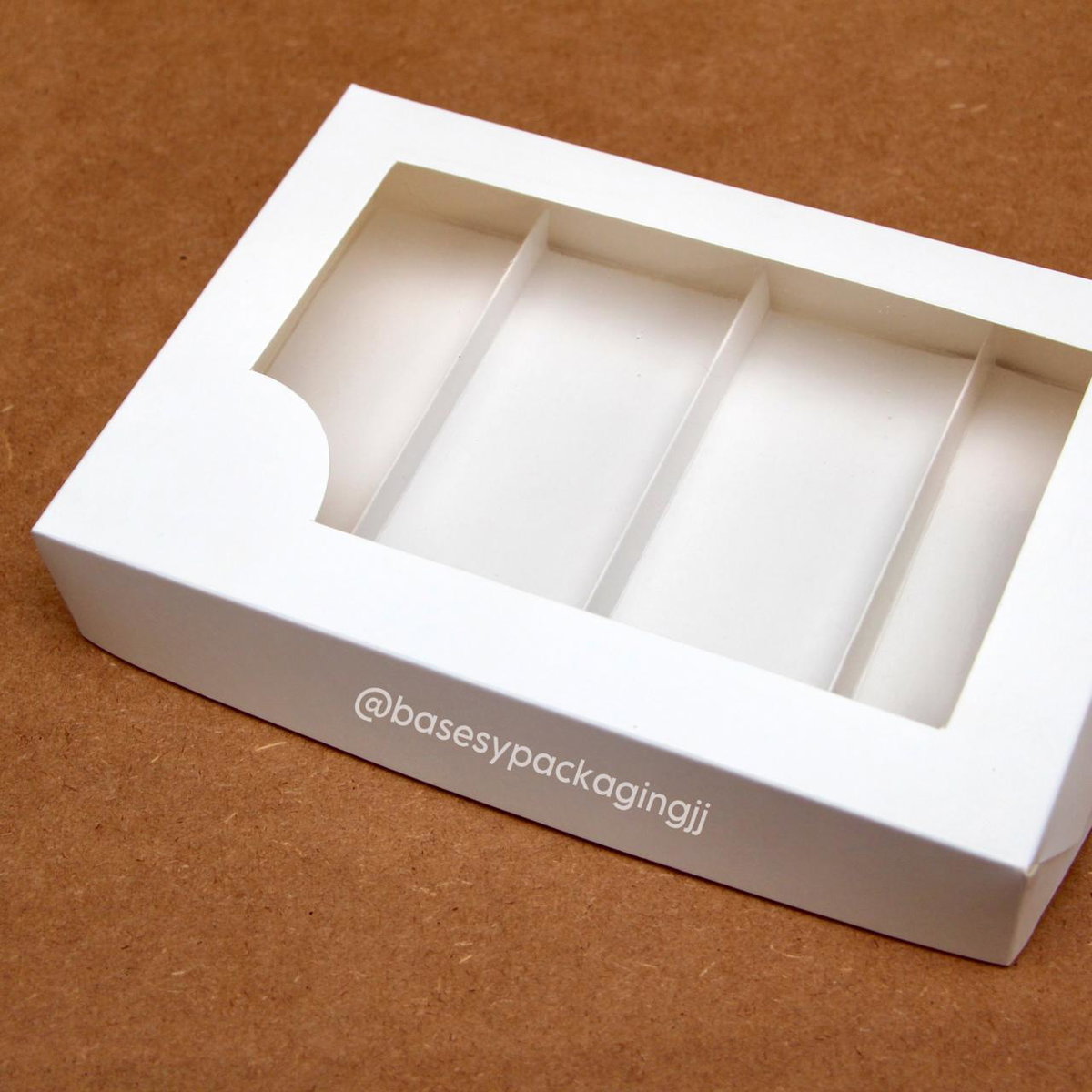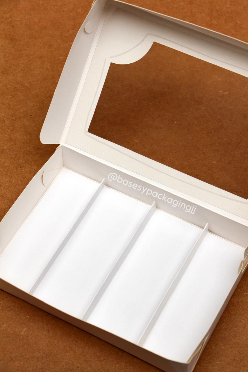 Cajas de cartulina blanca con visor con división
