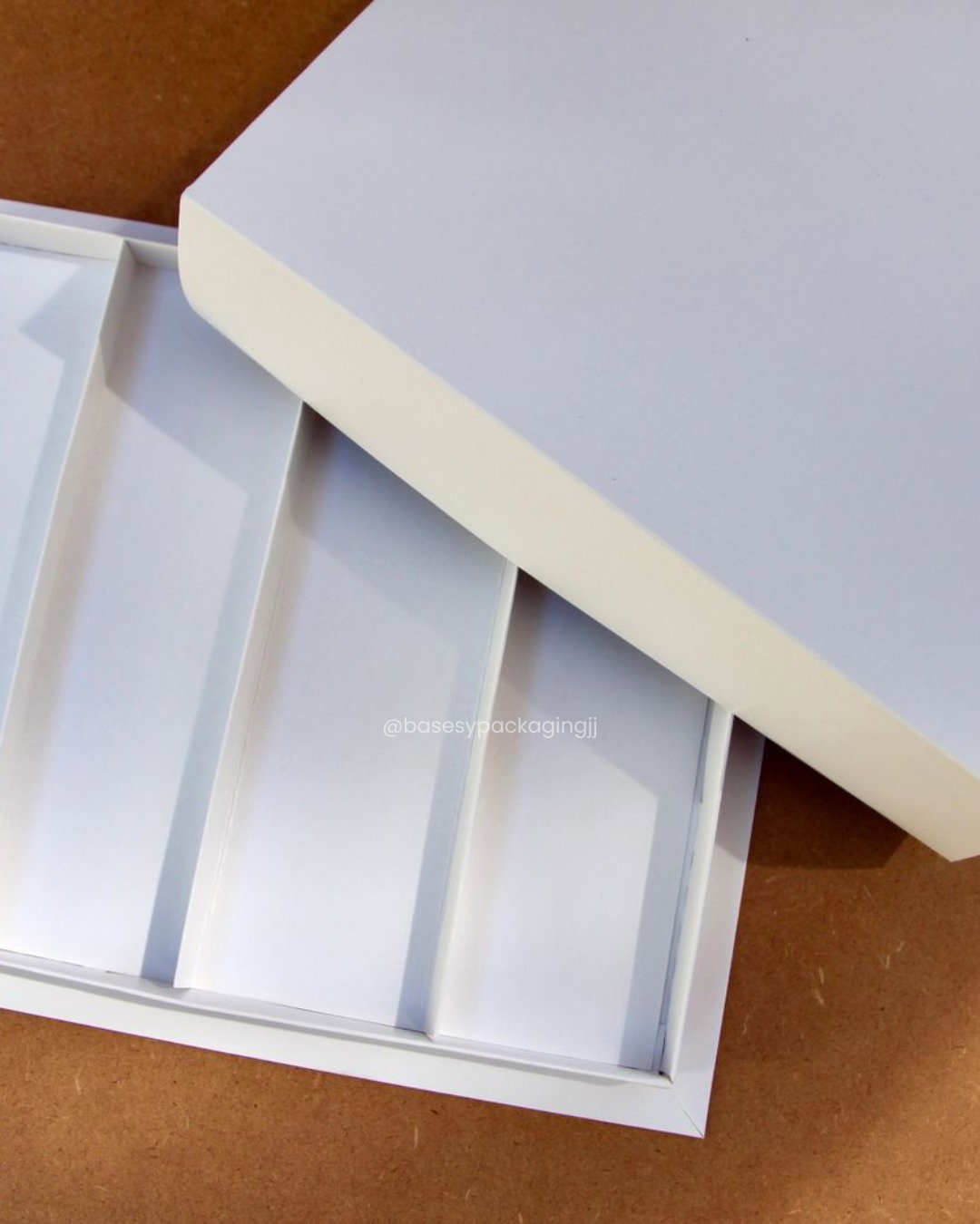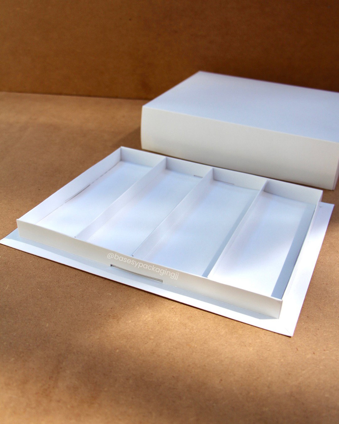 Caja galera de degustación con división de 4 canales, para porciones de 4x4cm o 5x5cm