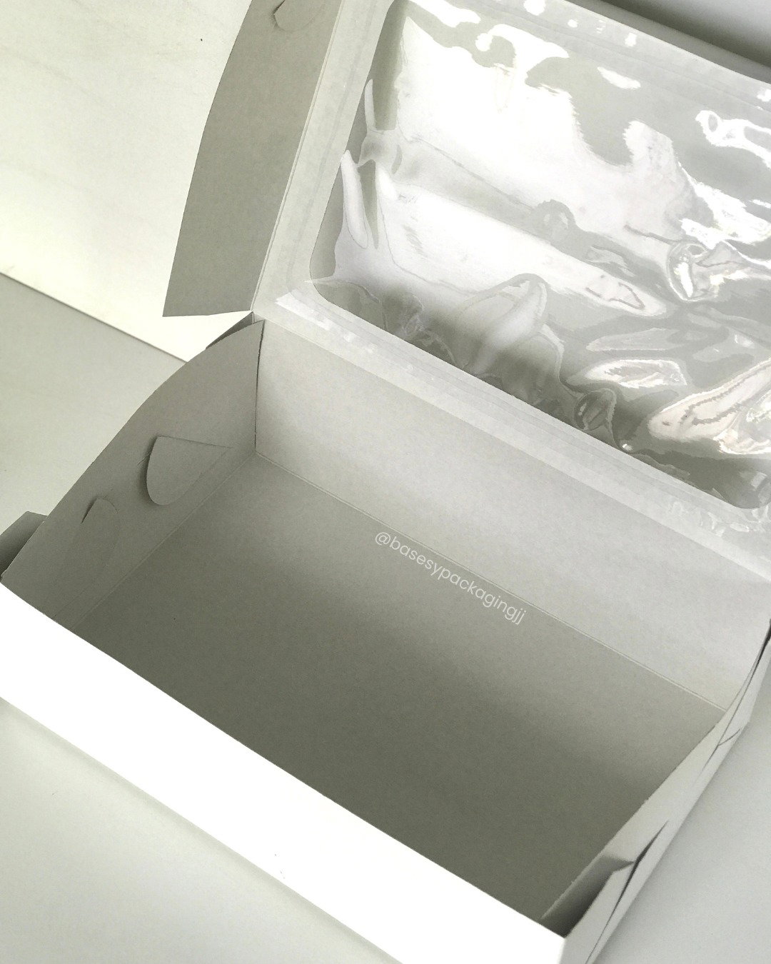 Cajas de cartulina blanca con visor para mini desayunos, porciones..