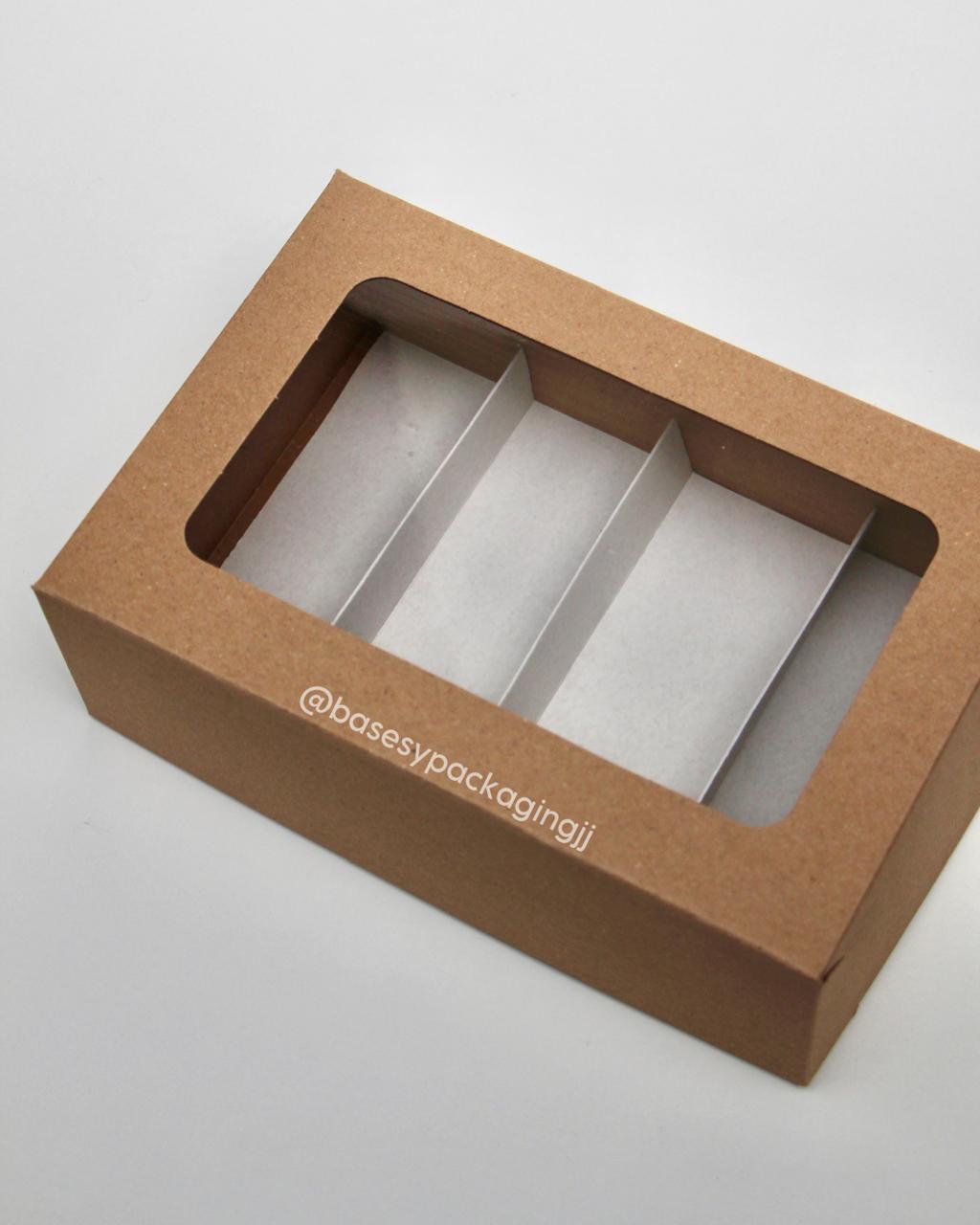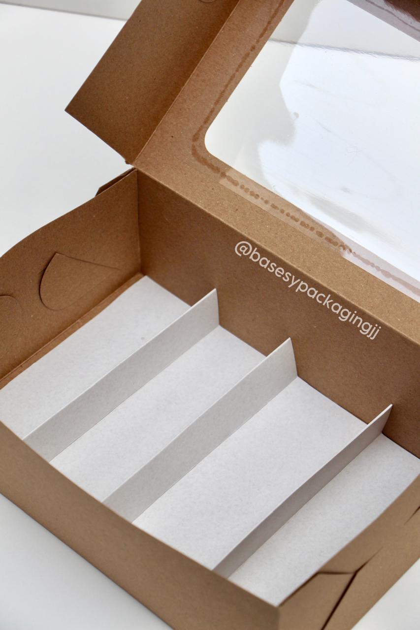 Cajas de cartulina kraft con visor + división, ideal para porciones de 4x4cm o 5x5cm