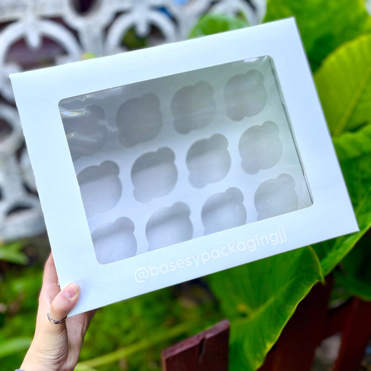 Cajas de cartulina blanca con visor con portacupcakes para 12 unidades