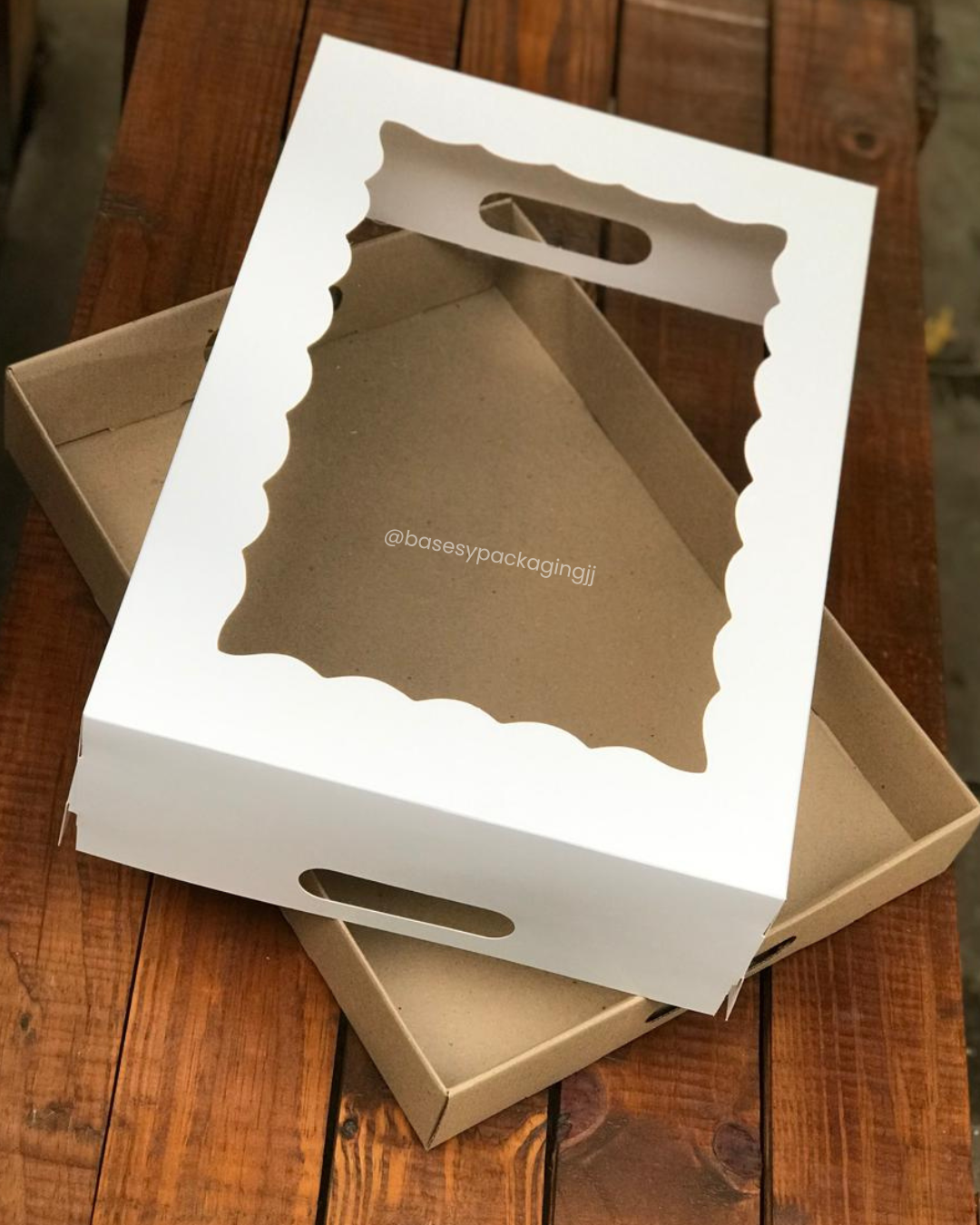 Base de cartón microcorrugadoy tapa de cartulina blanca con visor